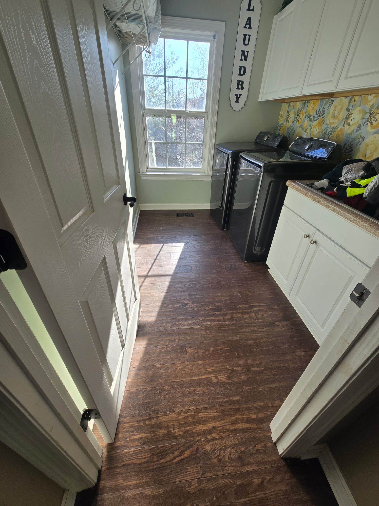 We installed a timeless oak laminate throughout the home to create a seamless flow between each room. The wide plank style highlights the natural wood look, adding both warmth and a touch of modern elegance. With its waterproof and scratch-resistant finish, this flooring is perfectly suited for busy family living, offering the beauty of hardwood with the easy care and long-lasting durability of laminate. From the kitchen to the living areas, every space now feels cohesive, inviting, and built to withstand everyday life.