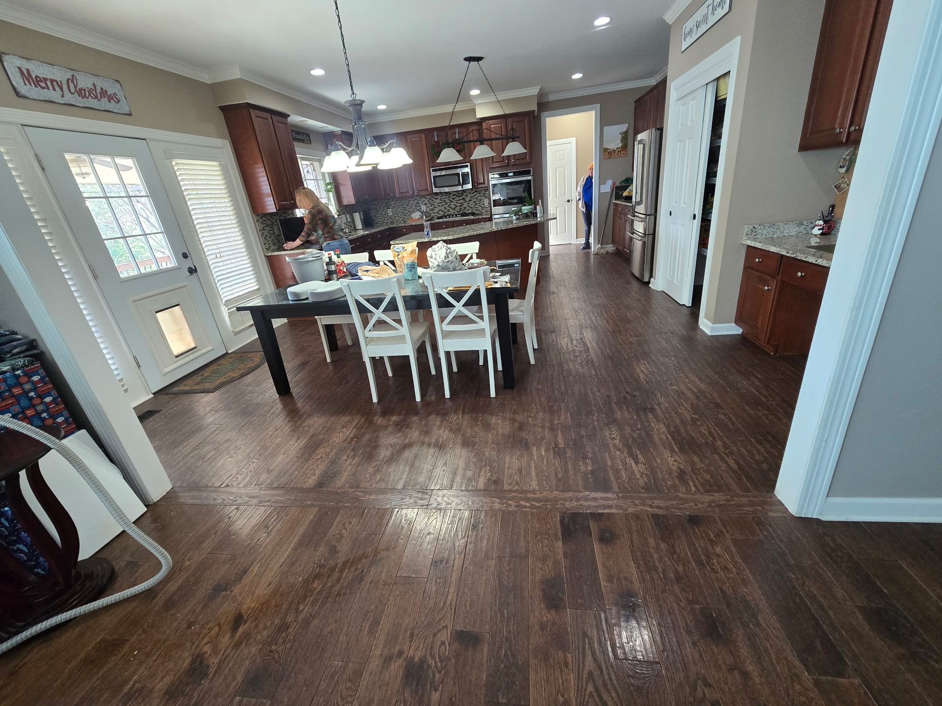 To bring warmth and timeless appeal to the Wilkins home, we installed beautiful pre-finished hardwood floors throughout the main living spaces. The rich, natural tones and smooth satin sheen instantly elevate each room, complementing both traditional and transitional design elements. Because the flooring arrived ready to install, no sanding or finishing was required—offering a cleaner, faster transformation with enduring quality. The result is a cohesive, polished look that enhances the home's charm and provides lasting comfort underfoot.