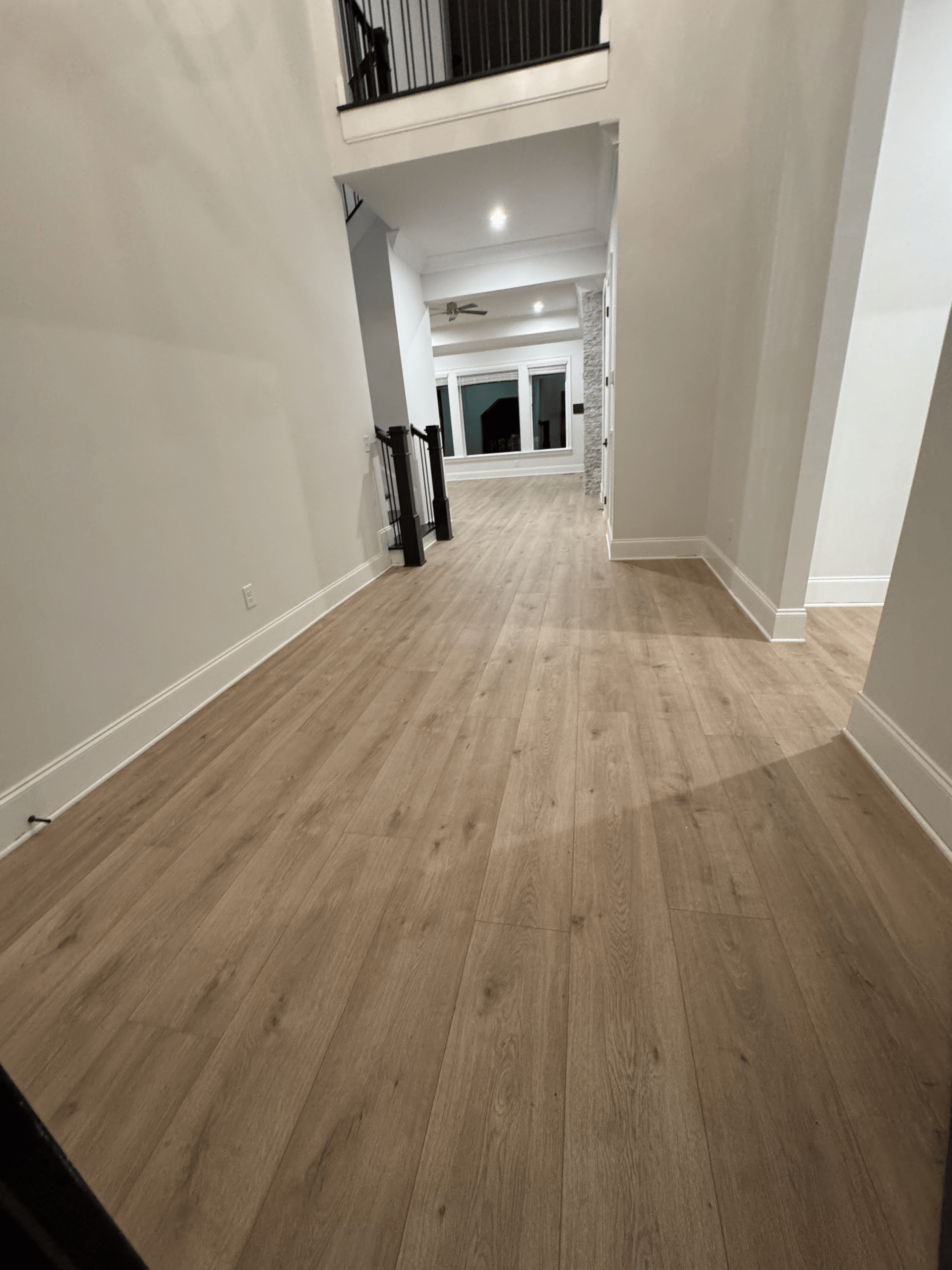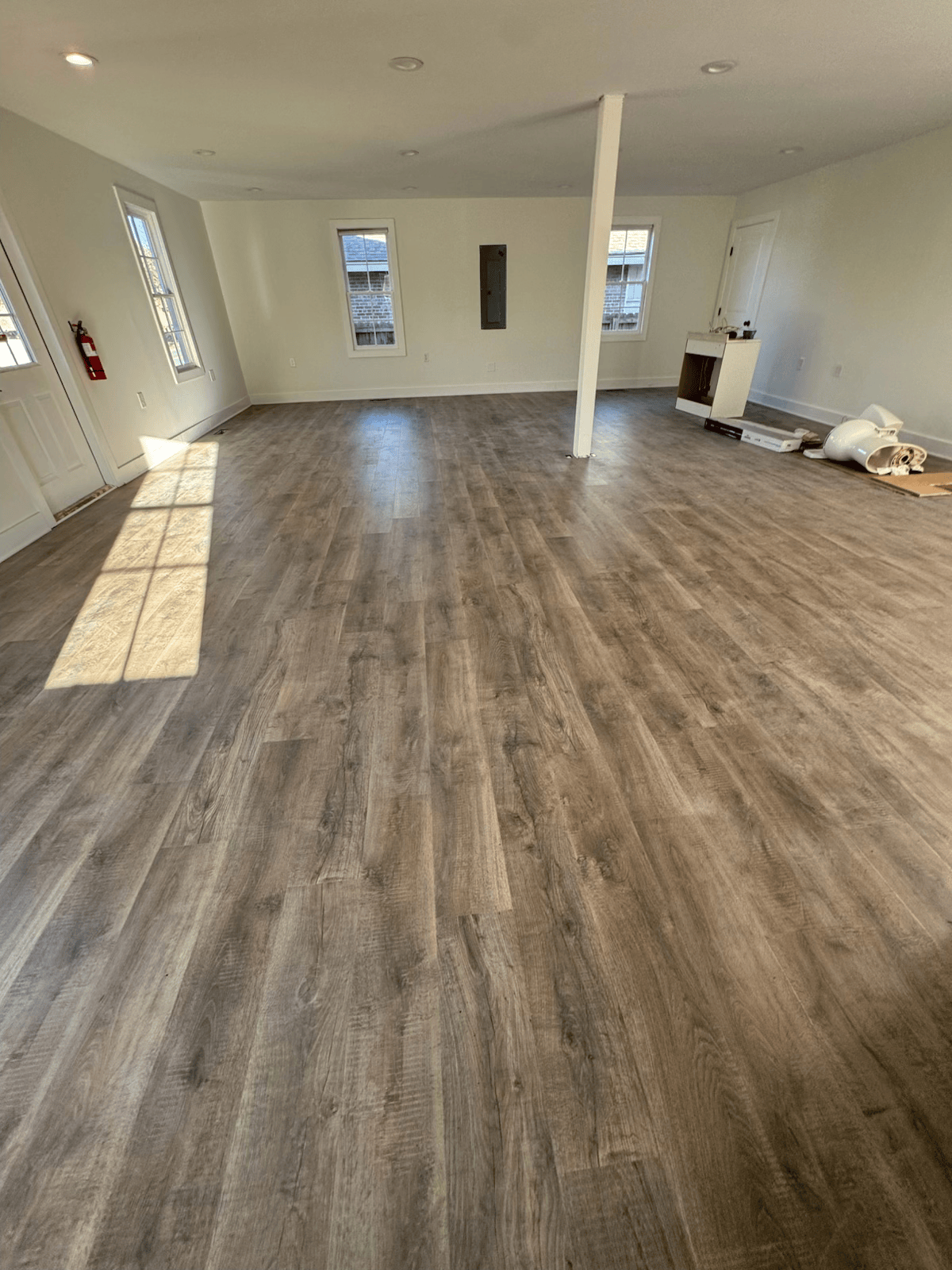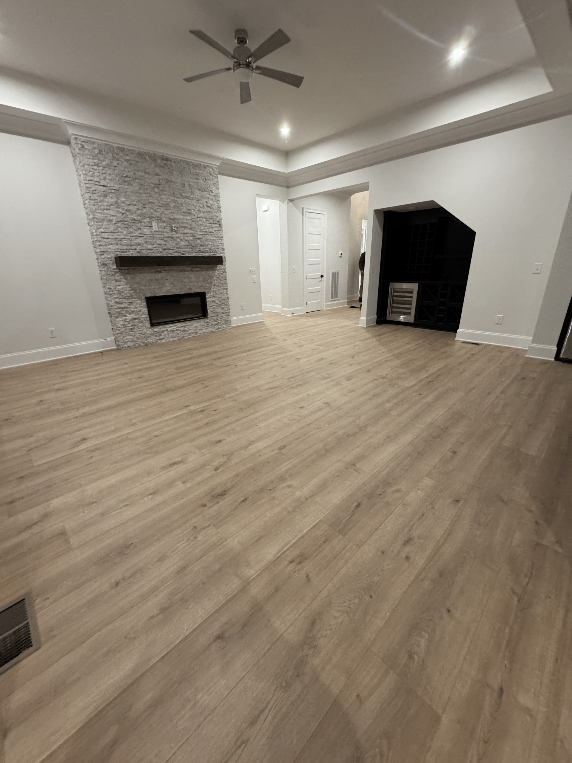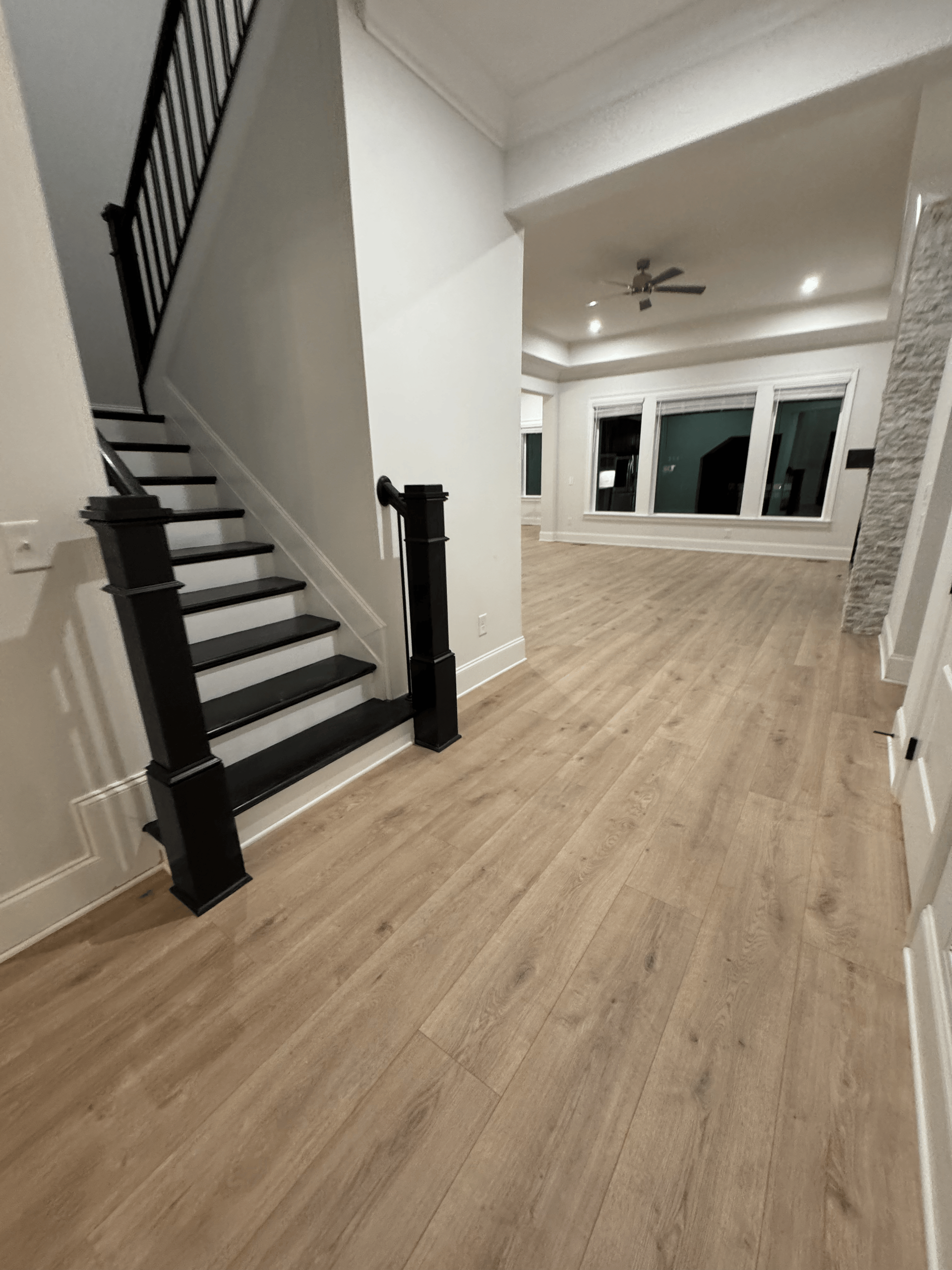 For this project, we installed luxury vinyl plank flooring throughout the open living space and adjoining areas, creating a modern, cohesive look with excellent durability. The natural wood inspired finish delivers warmth and texture while maintaining a clean, contemporary feel. Precise layout and tight seams ensure smooth transitions through doorways, stairs, and open rooms, allowing the flooring to flow seamlessly from space to space. Designed to withstand heavy foot traffic, moisture, and daily use, this LVP installation offers long lasting performance with the appearance of real wood, making it an ideal solution for both style and function.