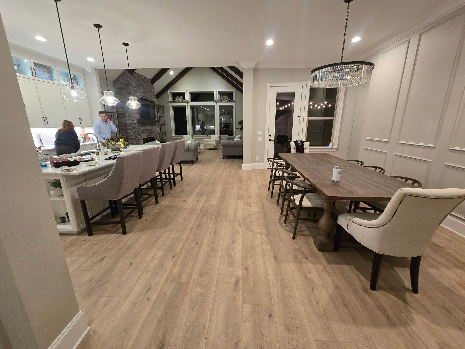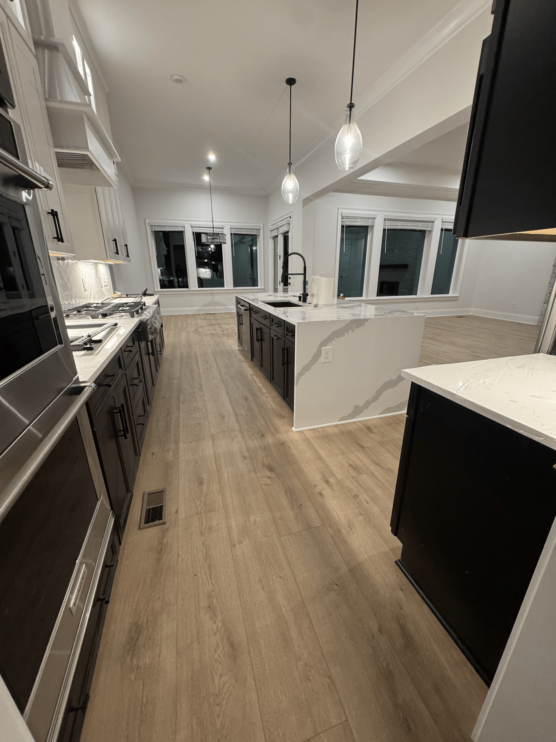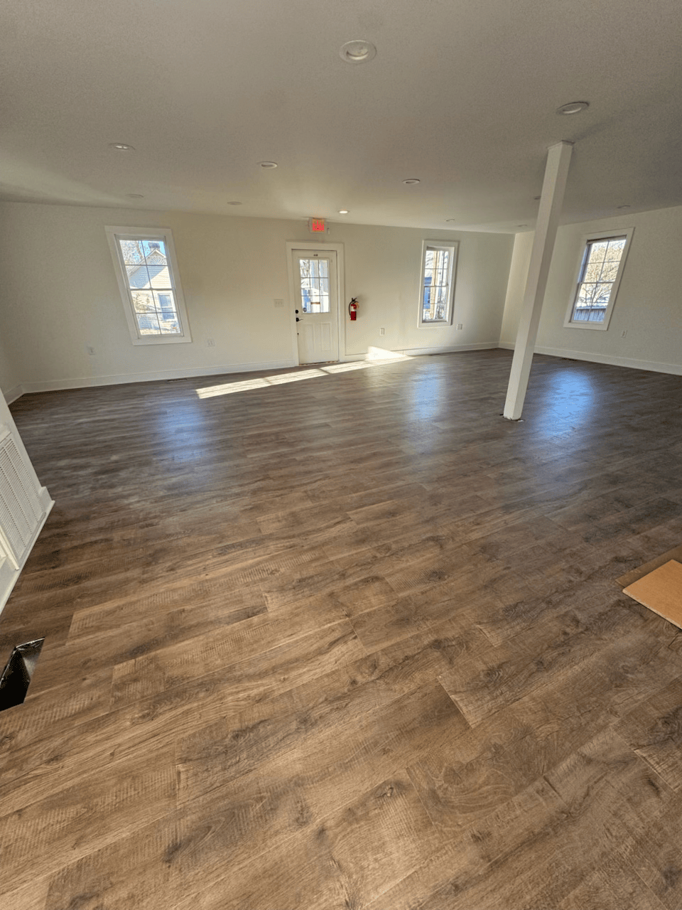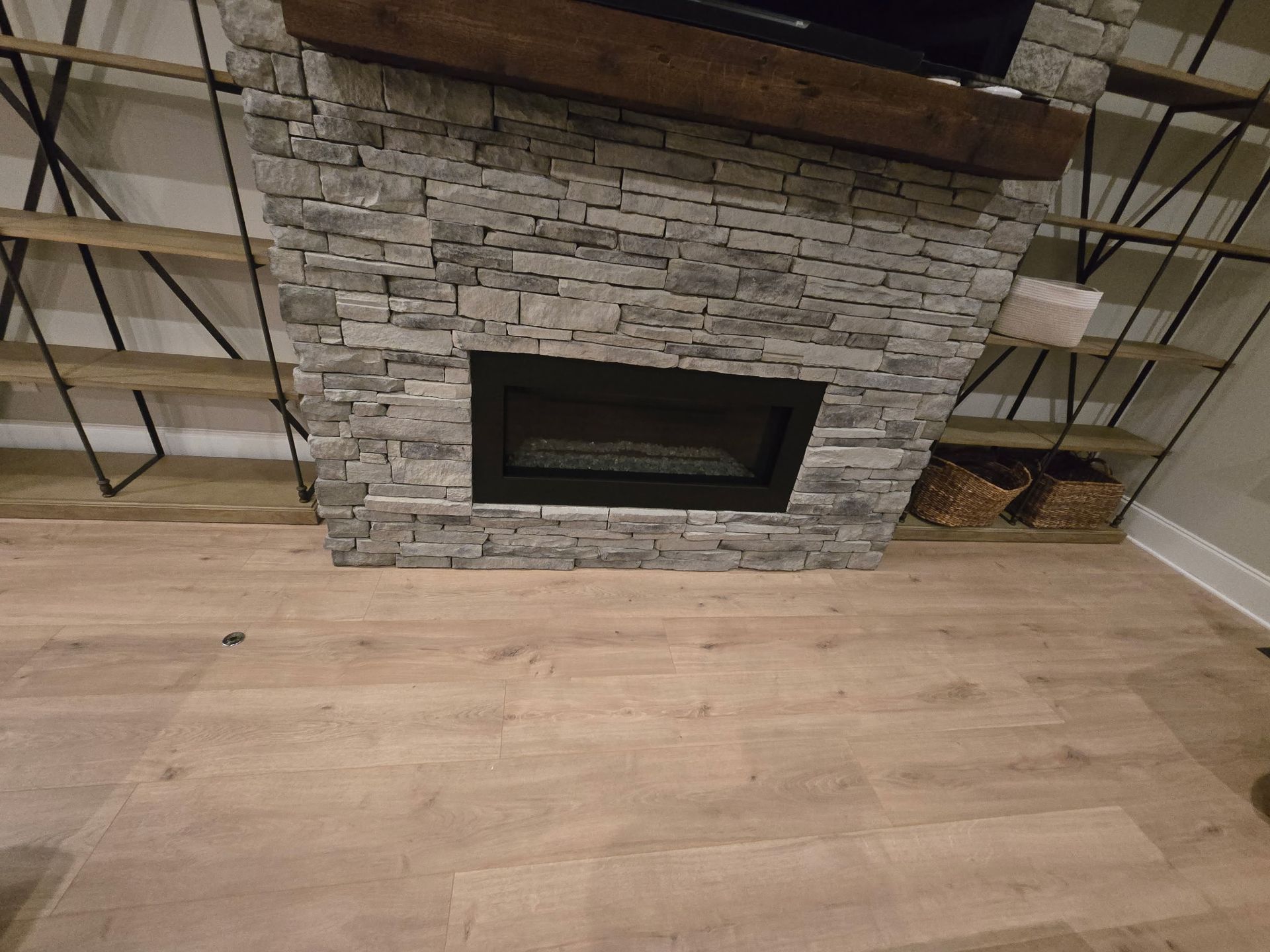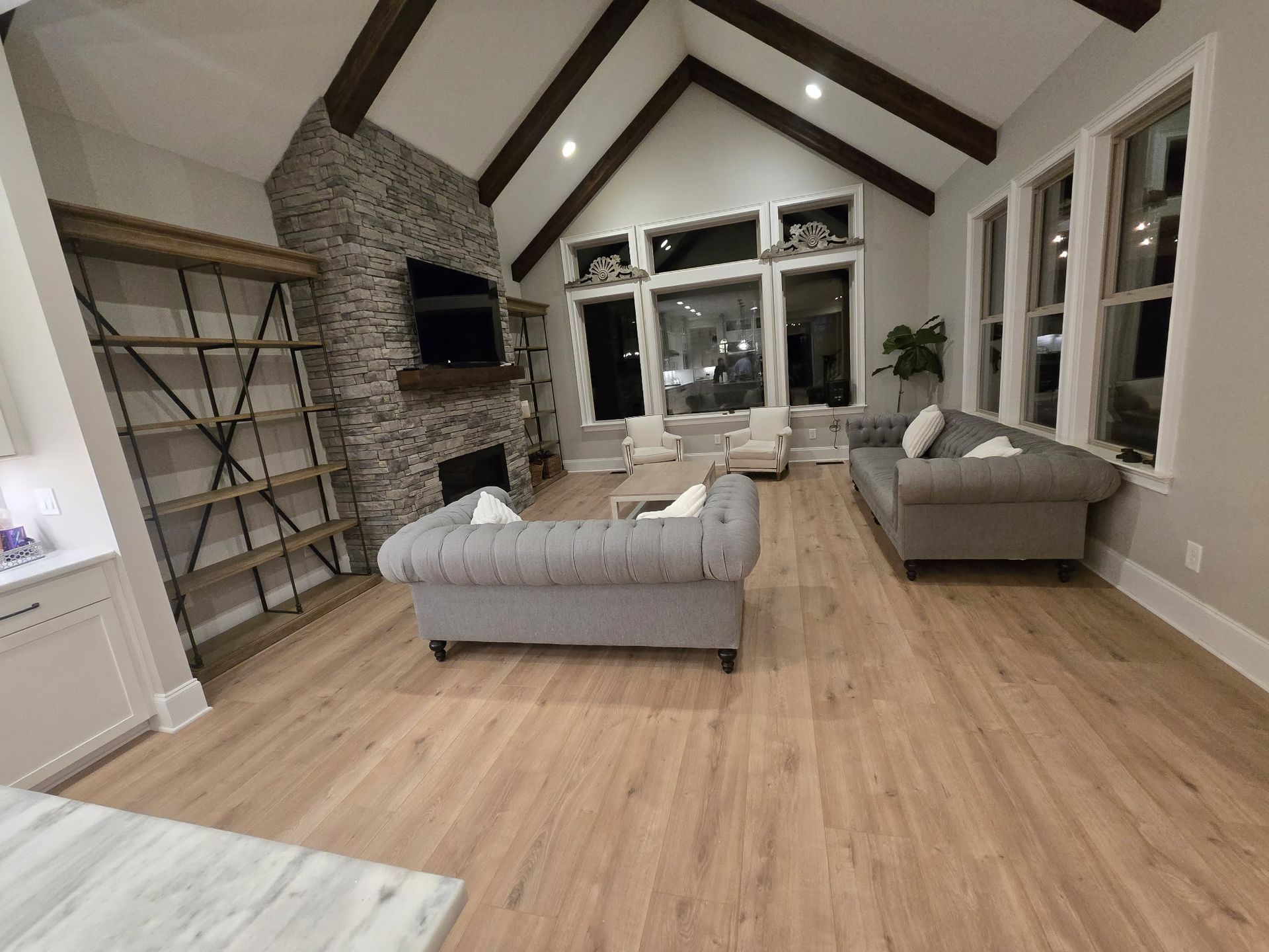 For this project, we installed luxury vinyl plank flooring throughout the open living space and adjoining areas, creating a modern, cohesive look with excellent durability. The natural wood inspired finish delivers warmth and texture while maintaining a clean, contemporary feel. Precise layout and tight seams ensure smooth transitions through doorways, stairs, and open rooms, allowing the flooring to flow seamlessly from space to space. Designed to withstand heavy foot traffic, moisture, and daily use, this LVP installation offers long lasting performance with the appearance of real wood, making it an ideal solution for both style and function.