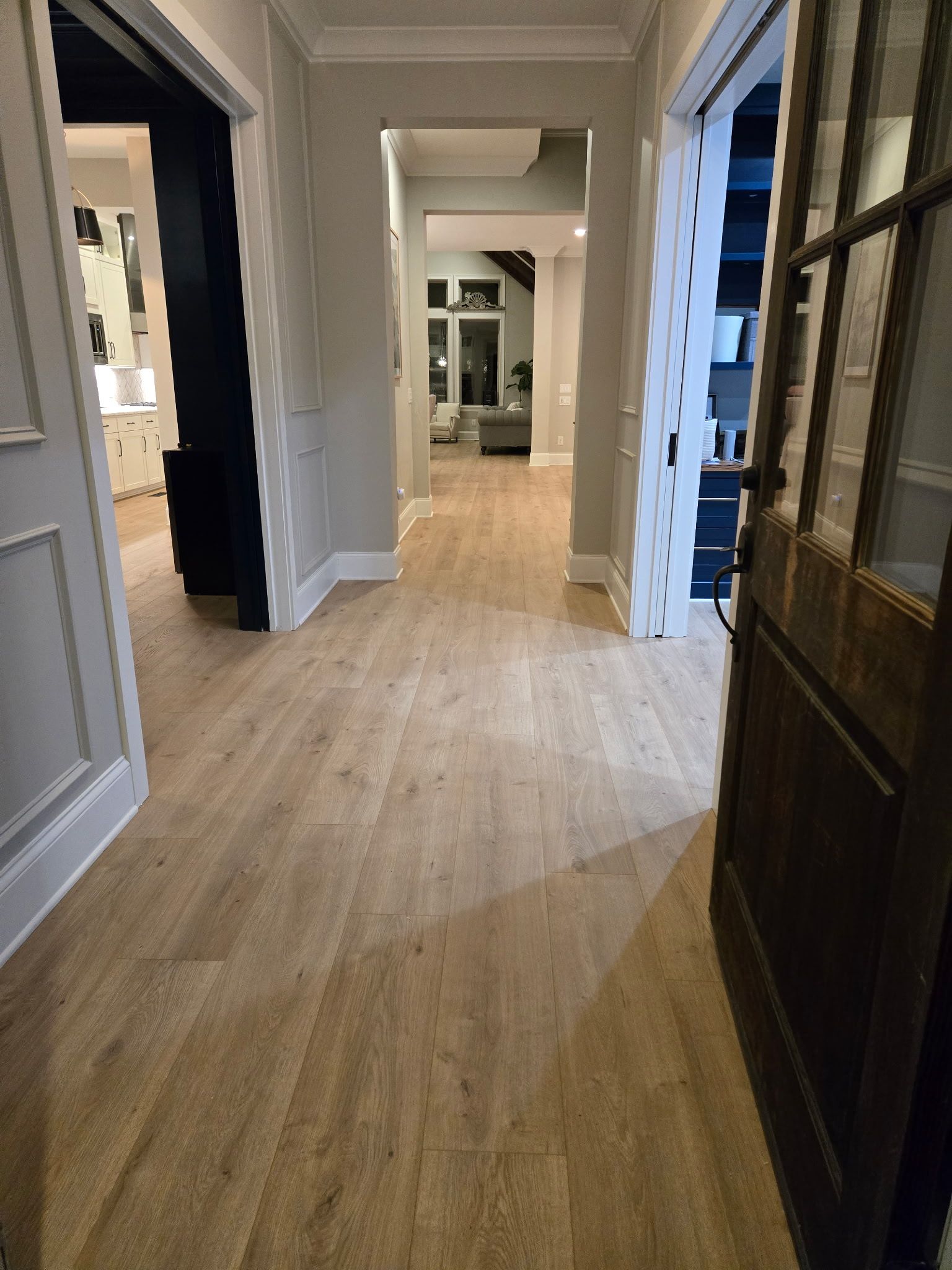The Schindel Project features a stunning luxury vinyl plank (LVP) flooring installation, combining durability, waterproof protection, and a beautiful wood-look finish. This scratch-resistant and low-maintenance flooring is perfect for high-traffic areas, offering the elegance of hardwood with added resilience. Expertly installed by Baldwin Family Flooring, this project highlights our commitment to precision, quality, and stylish flooring solutions for modern homes.