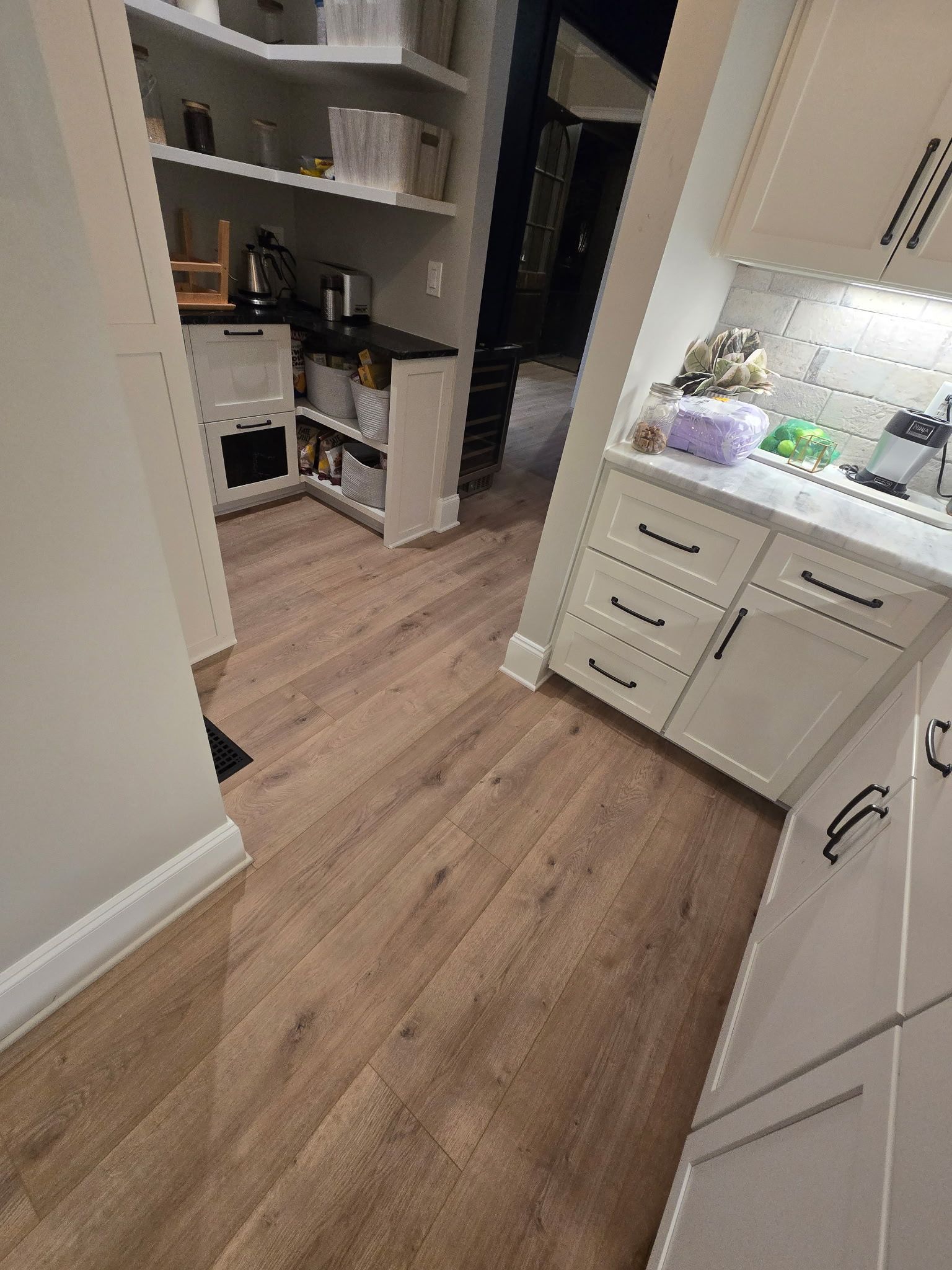 The Khorasani Project showcases a combination of laminate and luxury vinyl tile (LVT) flooring that brings both versatility and durability to this beautifully updated home. The laminate flooring offers a warm, natural wood-look finish, while the LVT provides a stylish, water-resistant solution ideal for high-moisture areas. Together, they create a cohesive flow between rooms with a balance of comfort, function, and visual appeal. Expertly installed by the Baldwin Family Flooring team, this project is a great example of how mixed flooring types can enhance both the look and practicality of a space.