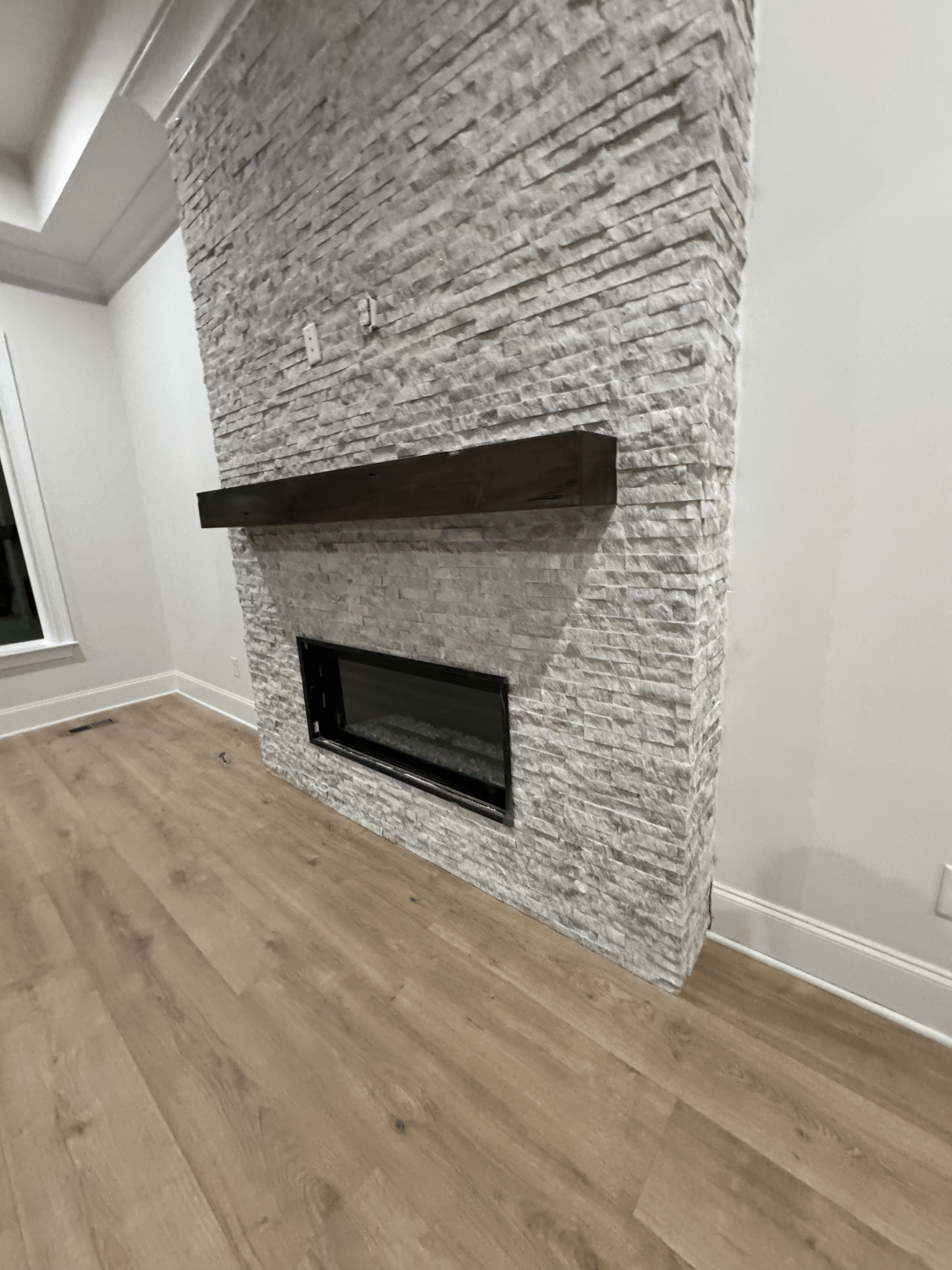 The Skyview Project features a beautiful combination of tile installations, adding style and functionality throughout the home. The kitchen received a fresh, modern look with a clean, vertical backsplash design that perfectly complements the cabinetry. In the laundry room, a sleek horizontal tile layout brings a subtle yet sophisticated touch to the space. To complete the project, the fireplace was updated with a durable tile surround and hearth, blending elegance with everyday durability. Each area was finished with precision craftsmanship, showcasing Baldwin Family Flooring’s commitment to quality and detail in every project.